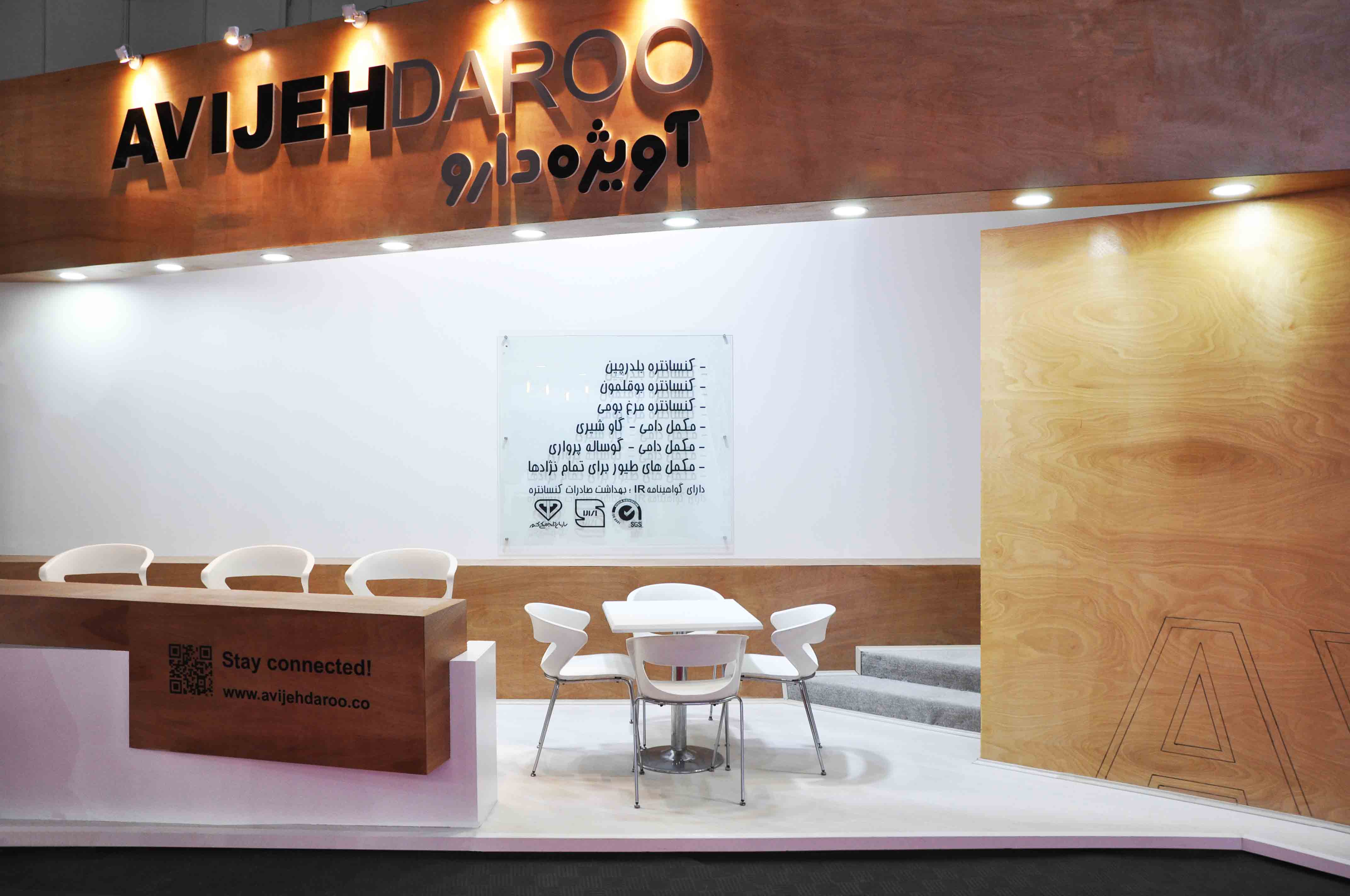 Avijeh Daroo booth at The 16th International Exhibition of Poultry Livestock and Related Industries had an interesting challenge. Placing the booth in the corner of hall 38 and having a range with narrow sides made the design work difficult but sweet for every designer.