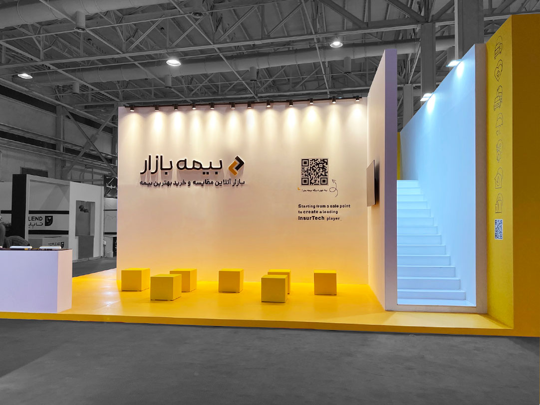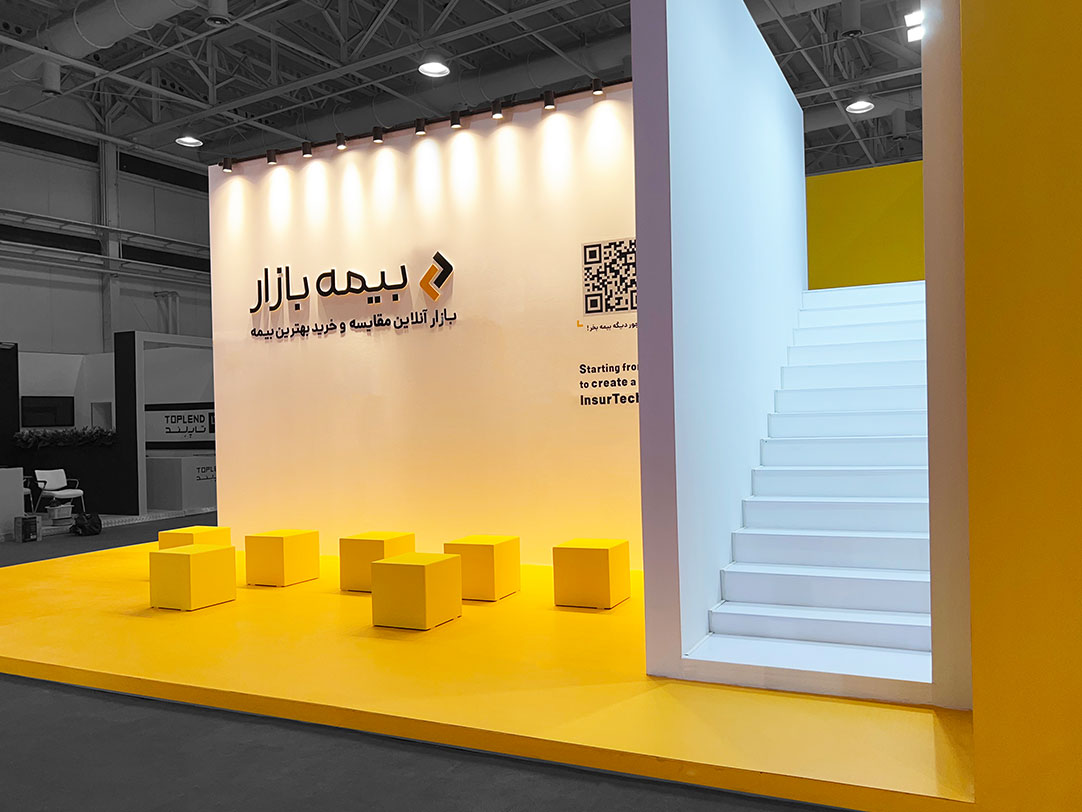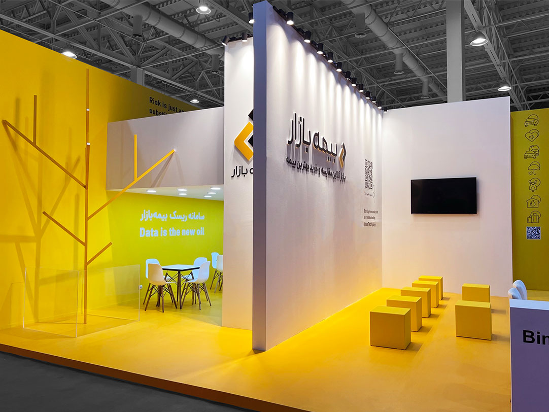 The Bime Bazar Booth at the 14th Insurance Exhibition is one of the finest examples of booths constructed by Ideh Sazan Dehnad Booth Construction Company.