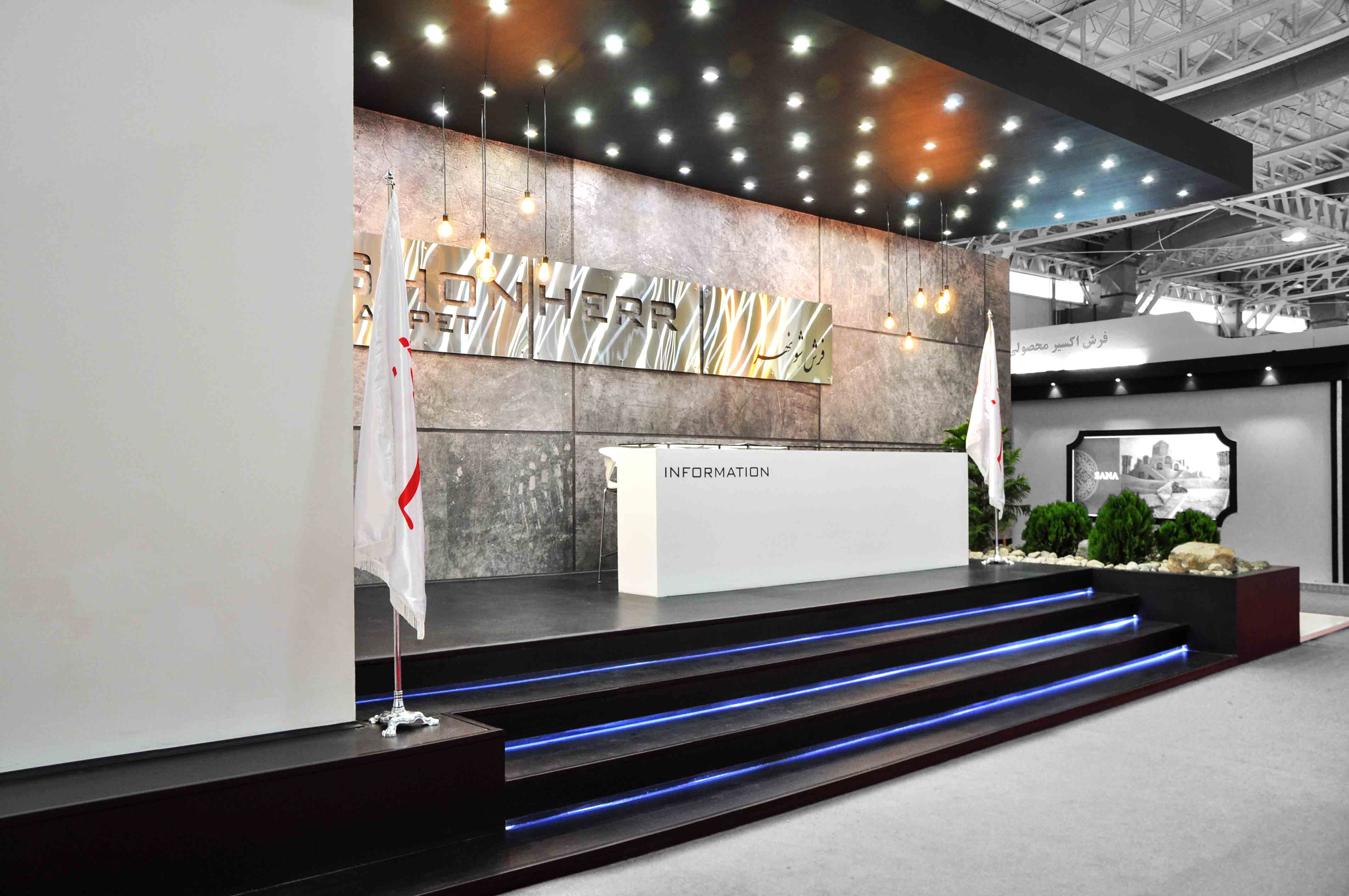 Until now, carpet manufacturing companies have been trying to attract their audience by displaying new patterns and designs of their products in the front of the booth. But this time, with a closer examination, the designers of the Dehnad company suggested that the booth should act as a statue and a billboard of the brand and display a valuable treasure that the products are inside.
